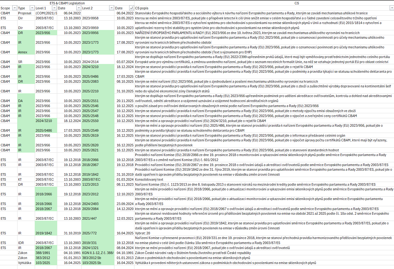 POLOŽKY SPADAJÍCÍ DO CBAM